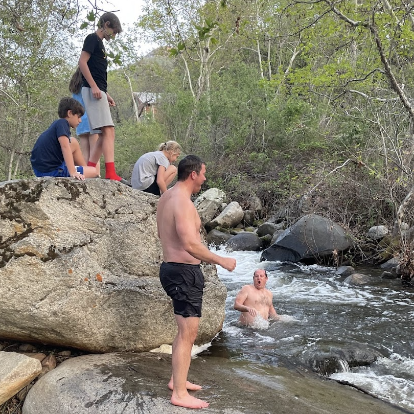 The dads went first (because of course they did). Carefully stepping across slippery rocks like they were auditioning for a wildlife documentary, they lowered themselves into the icy stream. Cheers erupted as they emerged, high-fiving and triumphant, until gravity struck. In a glorious slow-motion moment, they lost their footing and went under again, this time involuntarily. There was slipping, there was flailing, and at one point, a rogue dad’s head collided with another’s backside in what can only be described as a shallow-water slapstick ballet.