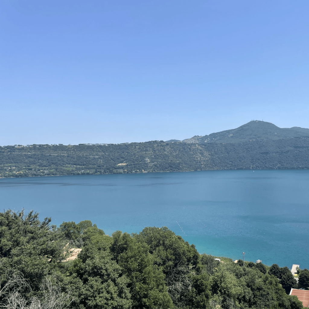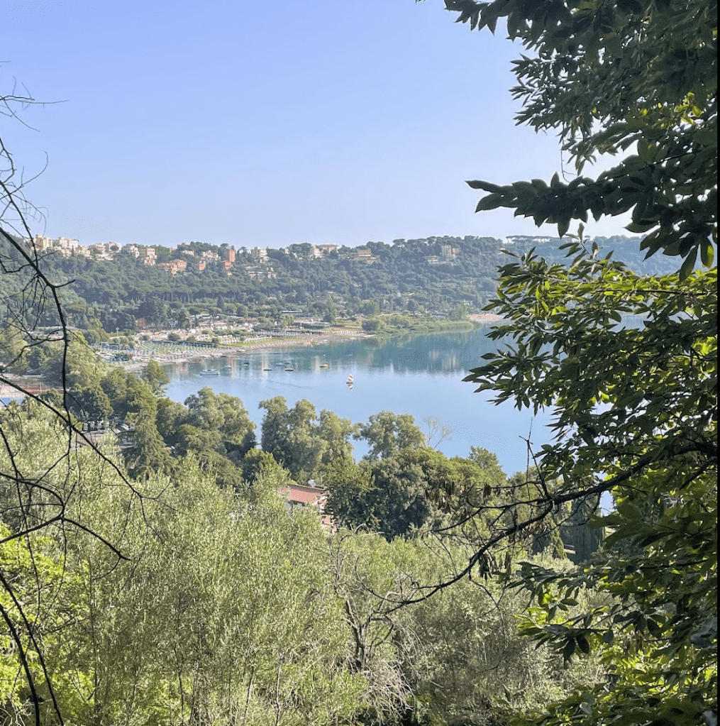 A quick bit of Googling pointed us toward a local secret: a deep blue volcanic lake just 40 minutes outside the city, nestled in the hills of Castel Gandolfo (yes, that Castel Gandolfo, the pope’s summer residence). A quick click and €4.60 return tickets later, we were set for a heatwave escape.