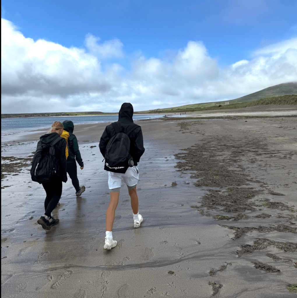 The days blurred into a mix of mud, long sandy beaches, freezing swims in the Atlantic, climbing over stiles, and giving nervous side-eye to cows guarding farmer’s fields. On Day 1, we staggered into Dingle just in time for a late lunch and promptly fell asleep at the table, waking only when the food arrived. On other days we found ourselves wading through puddles, dodging rain showers, and still managing to laugh through it all.