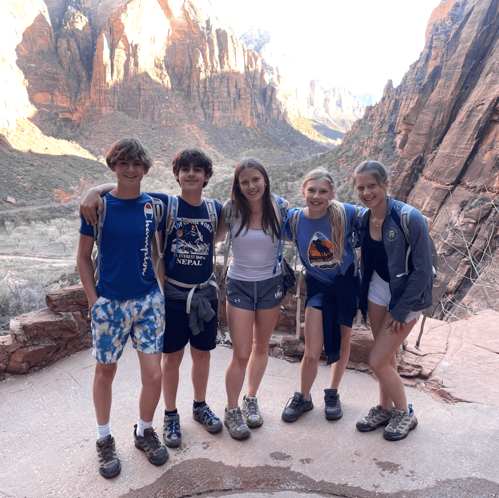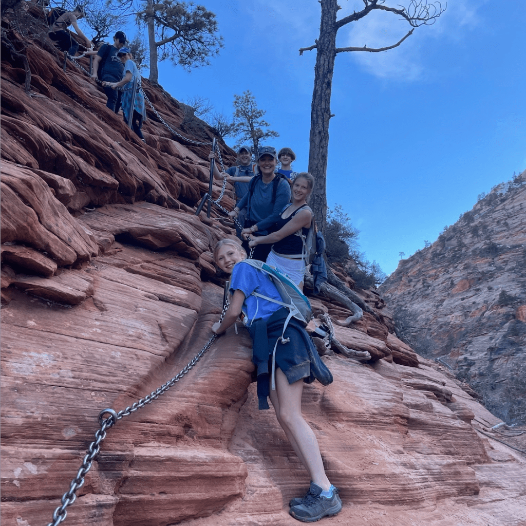 What followed was a heated family debate: Was the glory of Angel’s Landing worth the very real risk, especially with Quinn’s well-documented habit of wandering too close to ledges? Eventually, cooler (and more cautious) heads prevailed. With some muttering from the teens, we turned away from the chains and carried on a short stretch along the West Rim Trail instead, rewarded with equally spectacular views and vows from the kids to return one day without us “holding them back.”