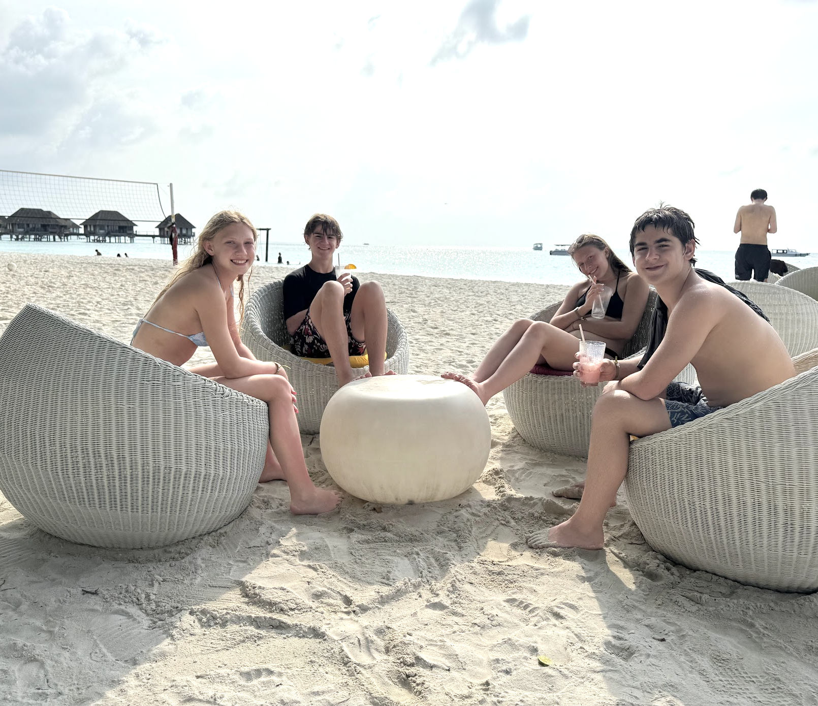 Much to the teens’ delight (or so they claimed with eye-rolls), we took hundreds of photos. The island was impossibly photogenic—every palm tree, swing, and turquoise horizon begging to be captured. Eventually, in a moment of good-natured exasperation, Daniel pulled a full ‘Homer Simpson,’ quietly retreating backward into the nearest bushes until only a rustle of leaves betrayed his escape.