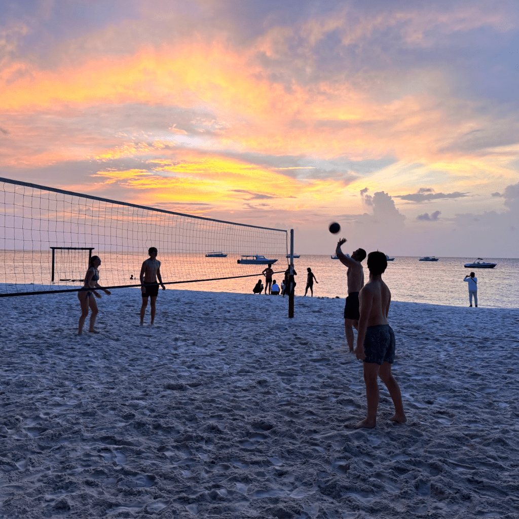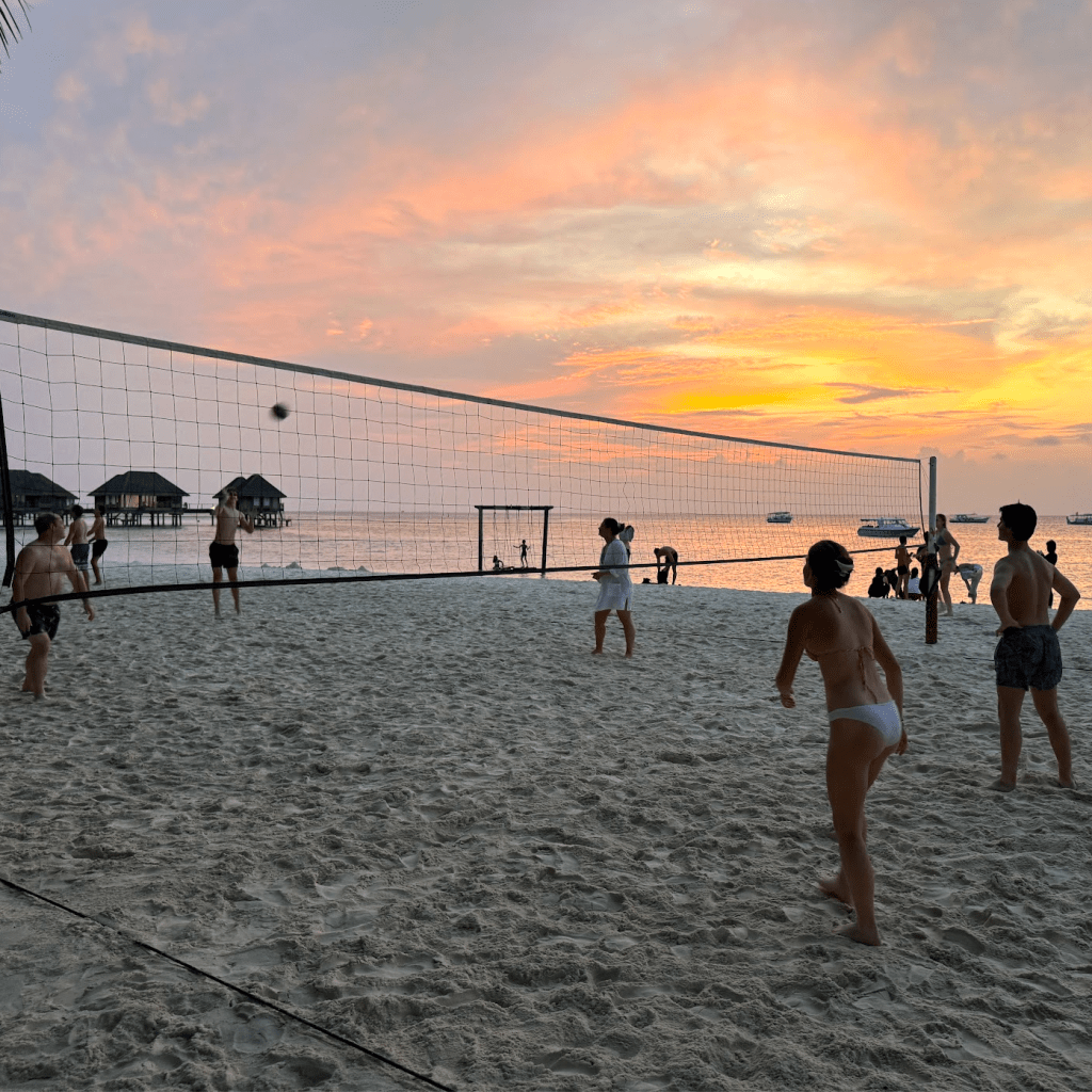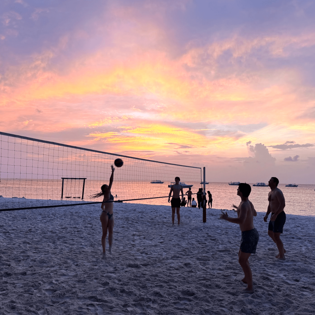 - Highlights: Overwater swings, snorkeling with sharks (cue Ally’s panic), sunsets and sunrises from the same island, family volleyball “competitions,” eat-all-you-can buffets