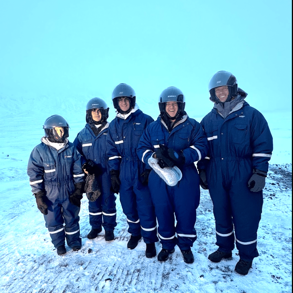 We had left them in Reykjavík—now a solid four hours away. Somehow (and we are still not entirely sure how), the guides let it slide, and soon each teen was confidently perched atop a gleaming snowmobile with a rather nervous passenger behind them. (Please don’t try this at home.)
